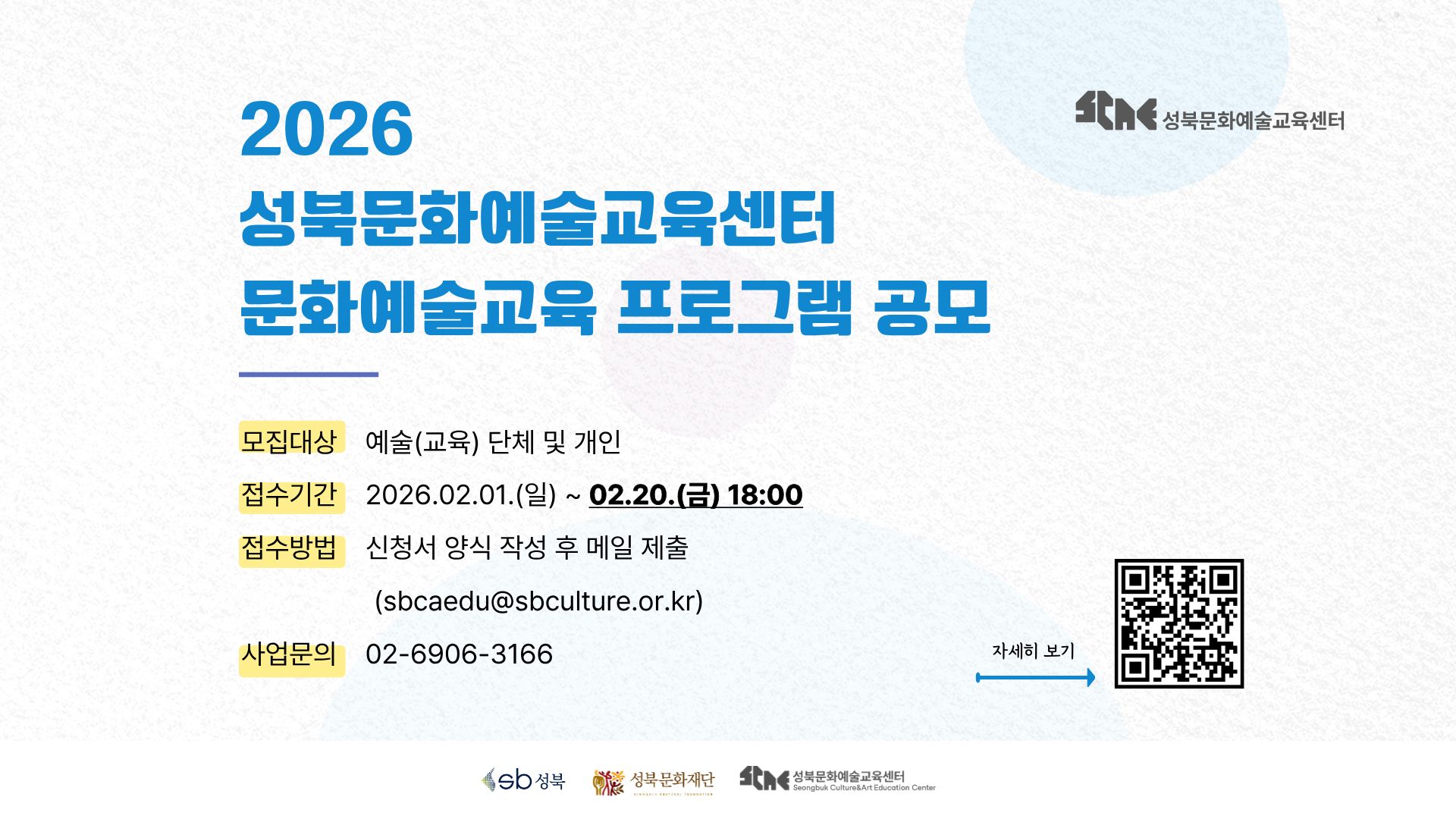 [성북문화예술교육센터] 2026 문화예술교육 프로그램 공모