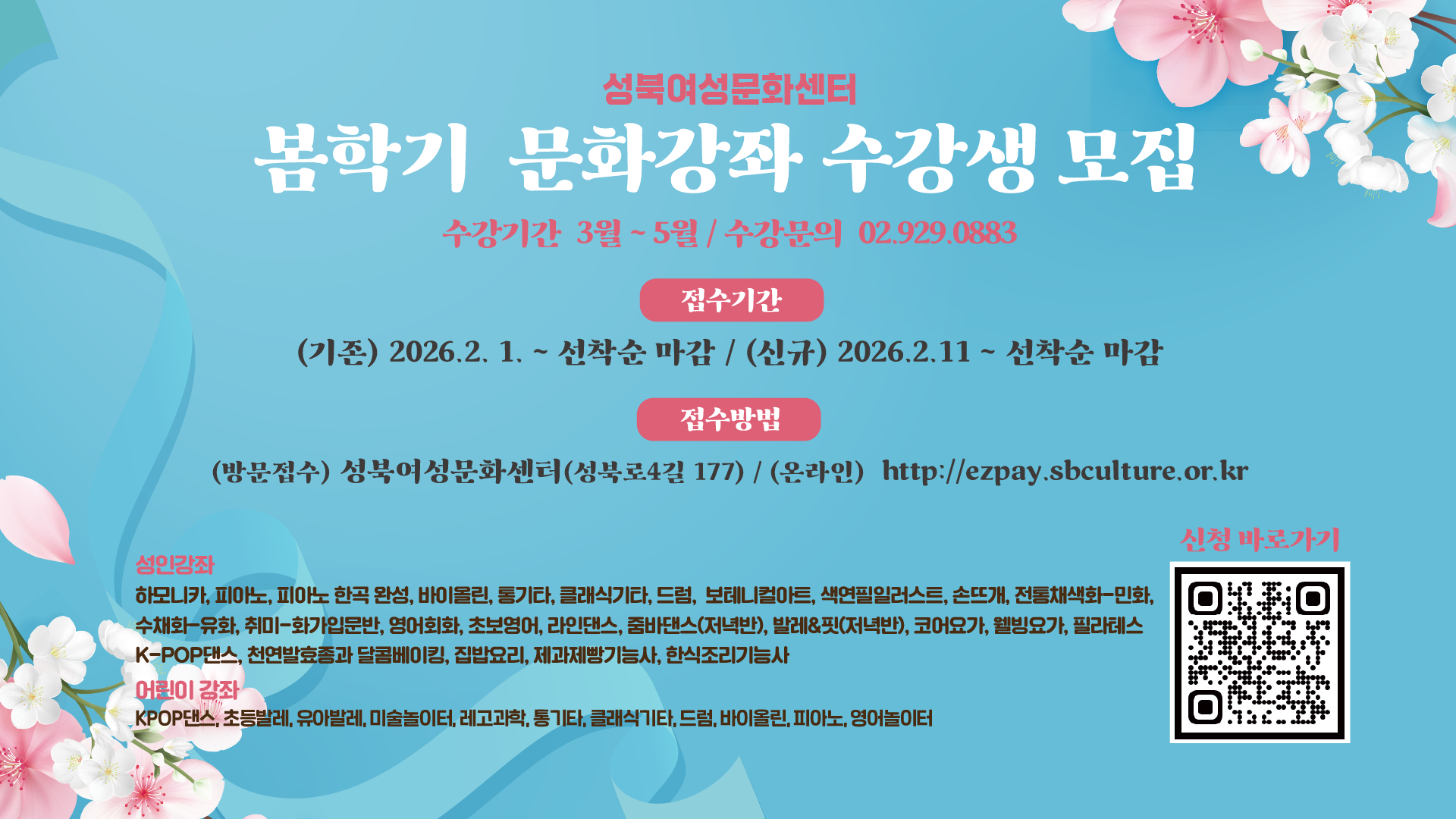 [성북여성문화센터] 봄학기 문화강좌 수강생 모집