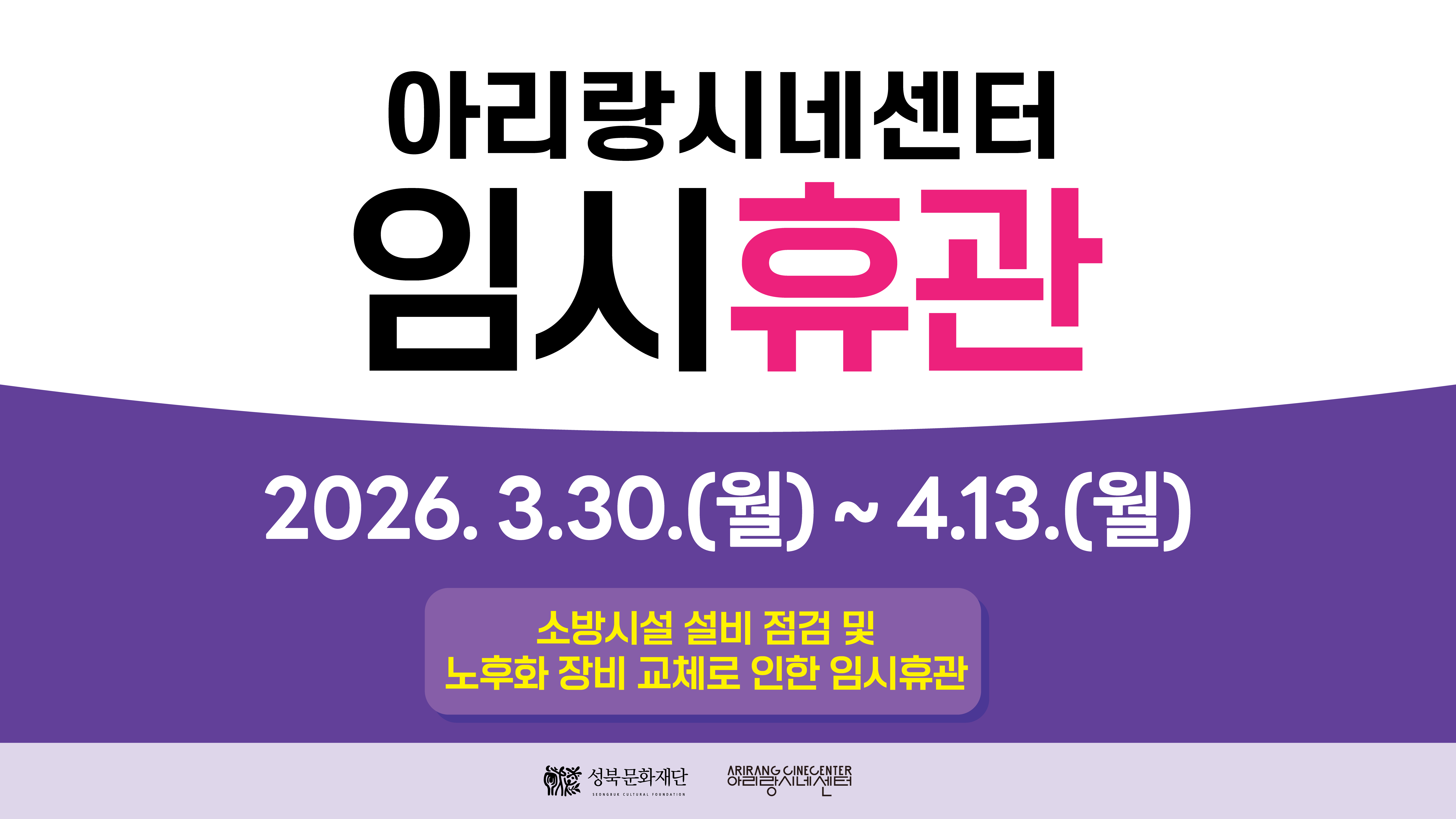 * 4월 11일(토)~12일(일) 아리랑인디웨이브(3층) 독립영화전용관은 정상운영합니다.