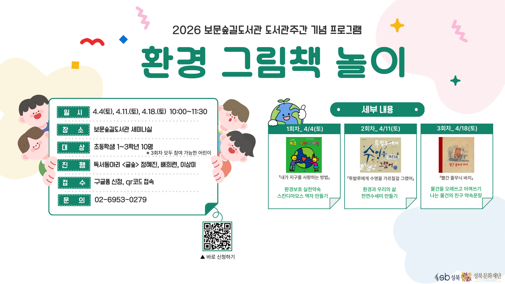 [보문숲길도서관] 4월 도서관주간기념 환경 그림책 놀이 모집
