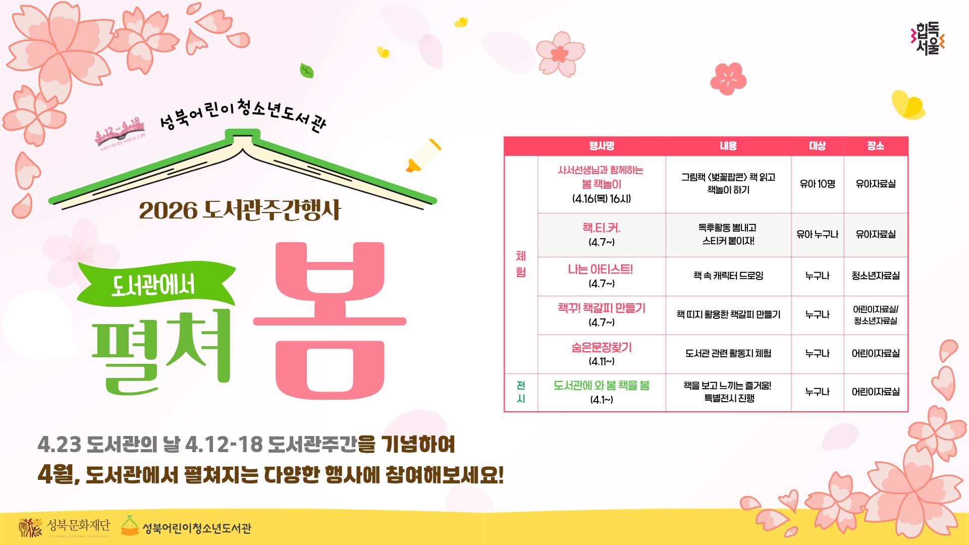 [성북어린이청소년도서관] 도서관에서 펼쳐 봄 |