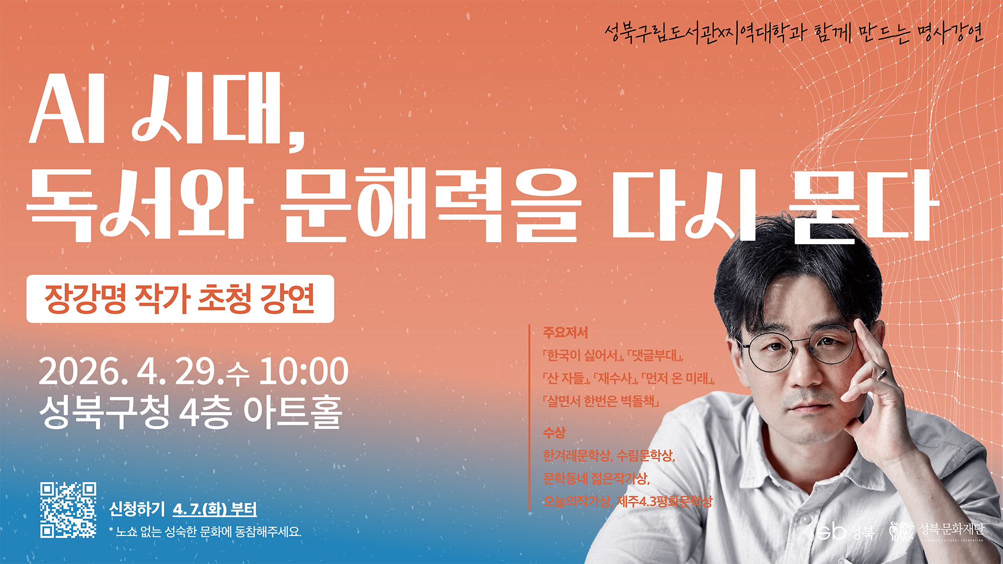 [성북구립도서관] 장강명 작가 초청강연 "AI 시대, 독서와 문해력을 다시 묻다"